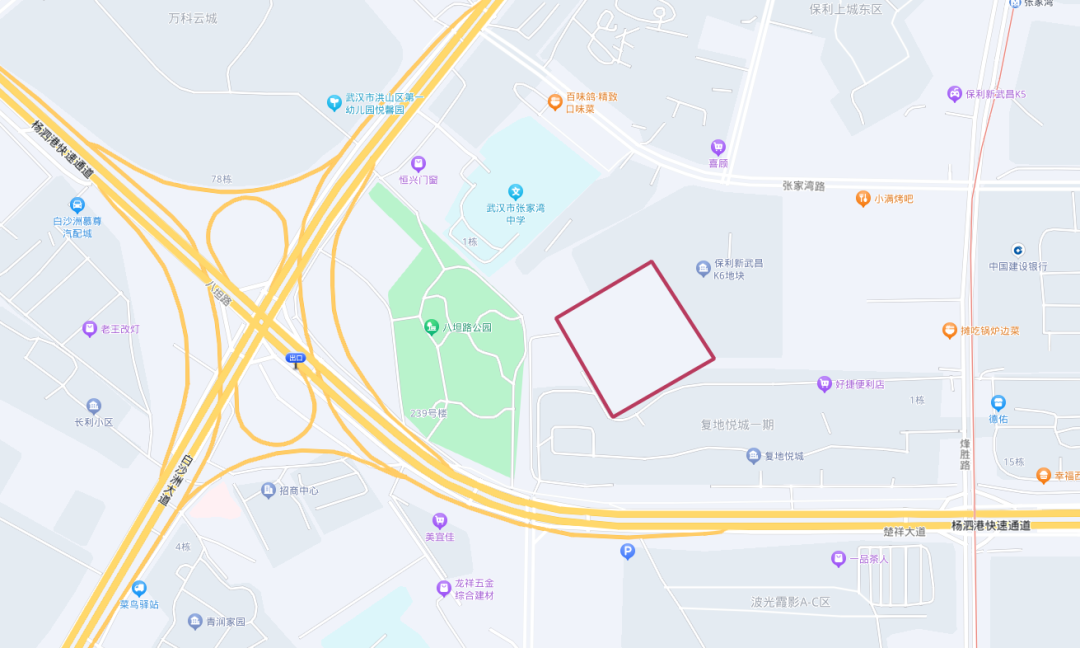 规划为住宅、公园绿地性质,土地面积20193㎡,建筑面积41800㎡,以底价22070万元竞得。该地块面积不大,处于复地、新武昌、烽火祺福青塆、张家湾中学、八坦路公园合围的中间位置。