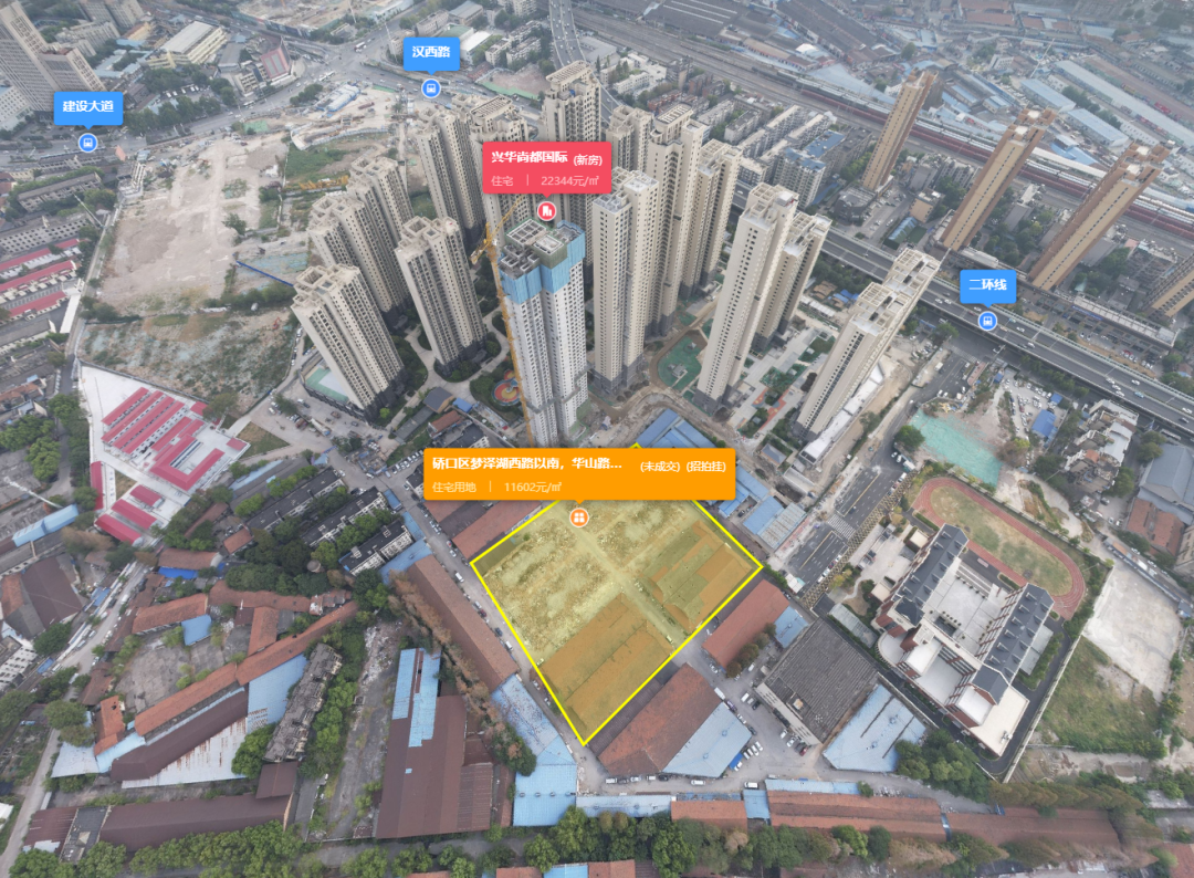 另一宗溢价成交的是位于东西湖区创慧路的P(2022)068号住宅地块,经2家企业网上竞价3轮后,最终武汉临空港网安建设发展有限公司以6.5251亿元的总价成交,溢价率为1.56%。竞得人由武汉临空港投资集团有限公司和中国交建(601800.SH)分别持股51%和49%。
