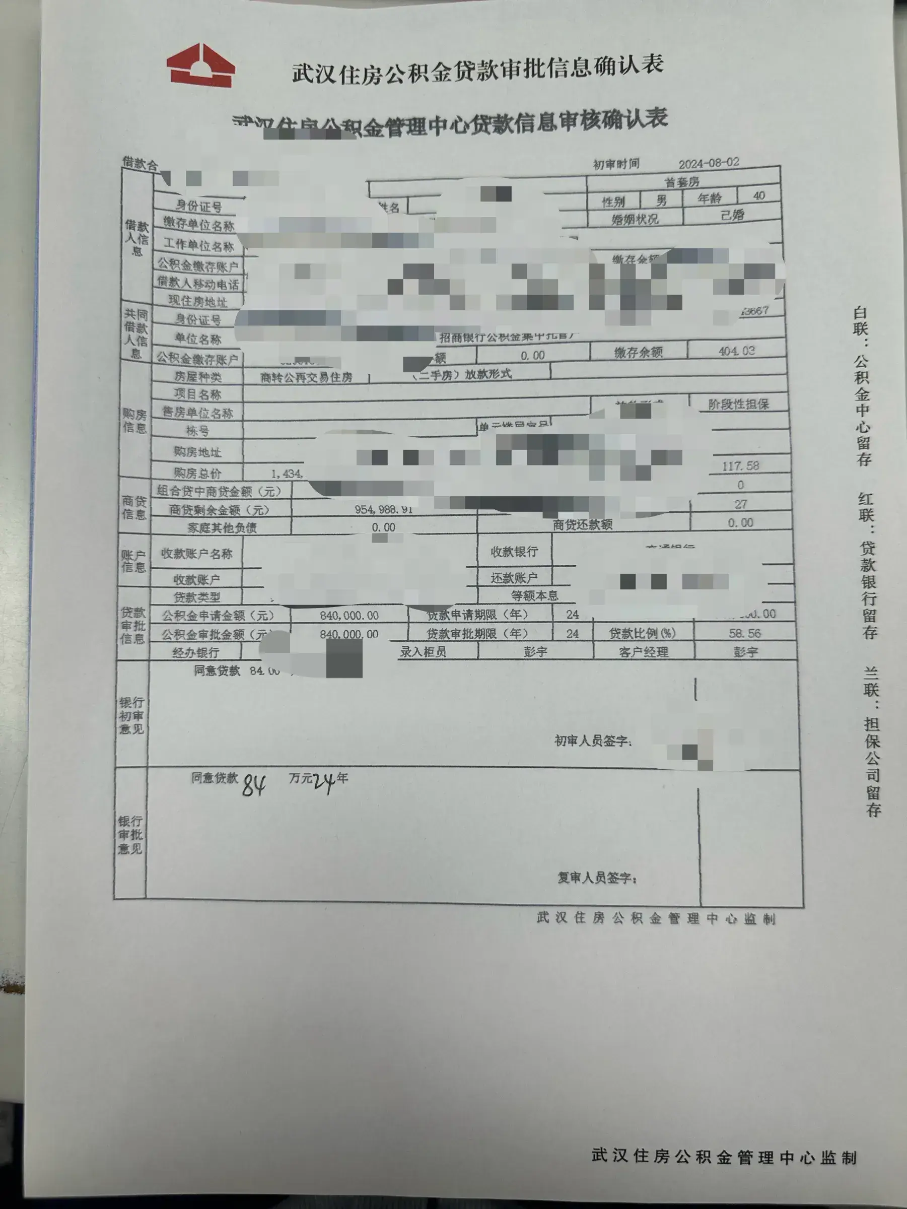 7:当天银行工作人员会反馈公积金中心贷款信息审核确认表;(拿到这个才能去办理商转公担保)