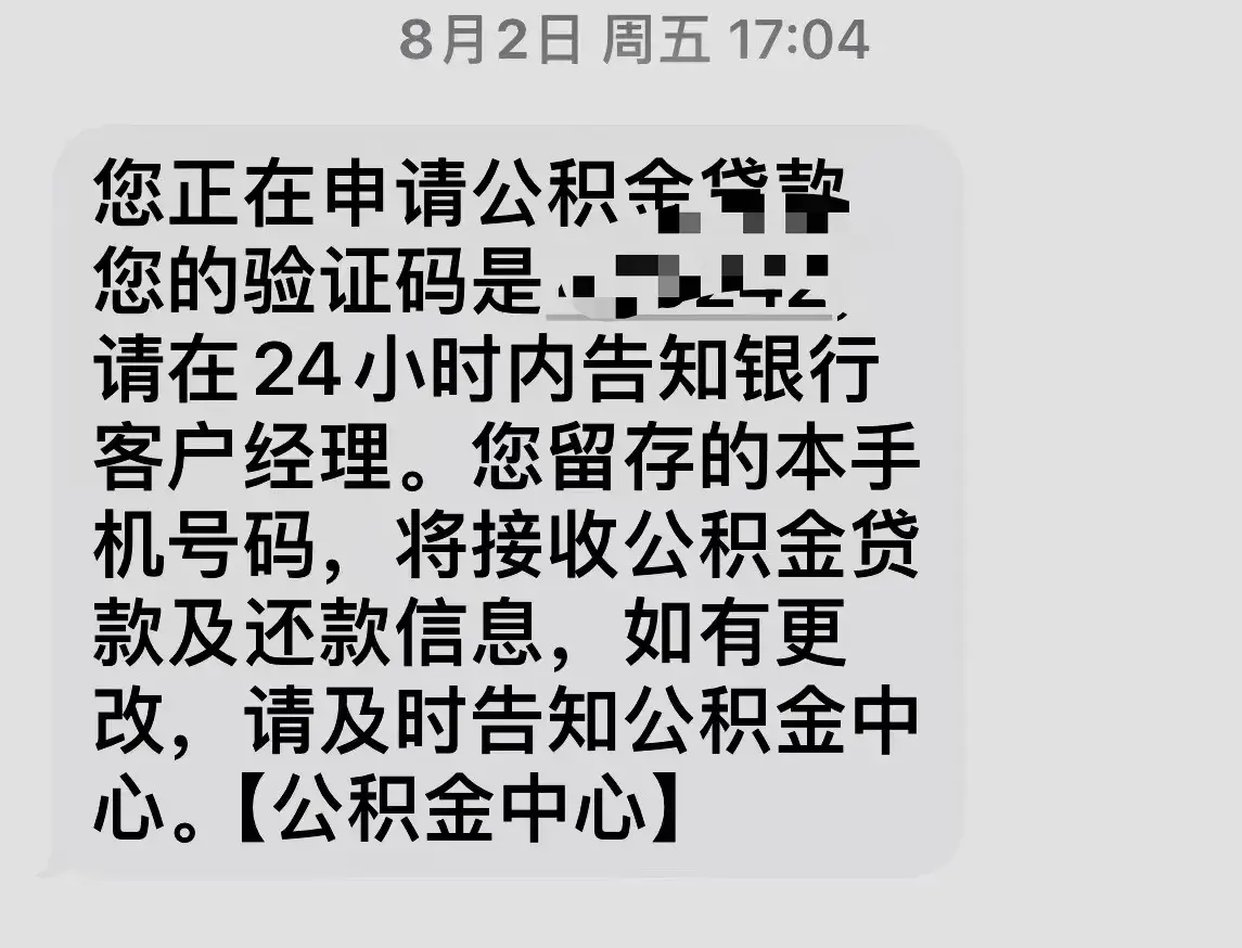 5:8月2日收到公积金中心办理短信;(需要及时联系贷款银行办理工作人员告知验证码)