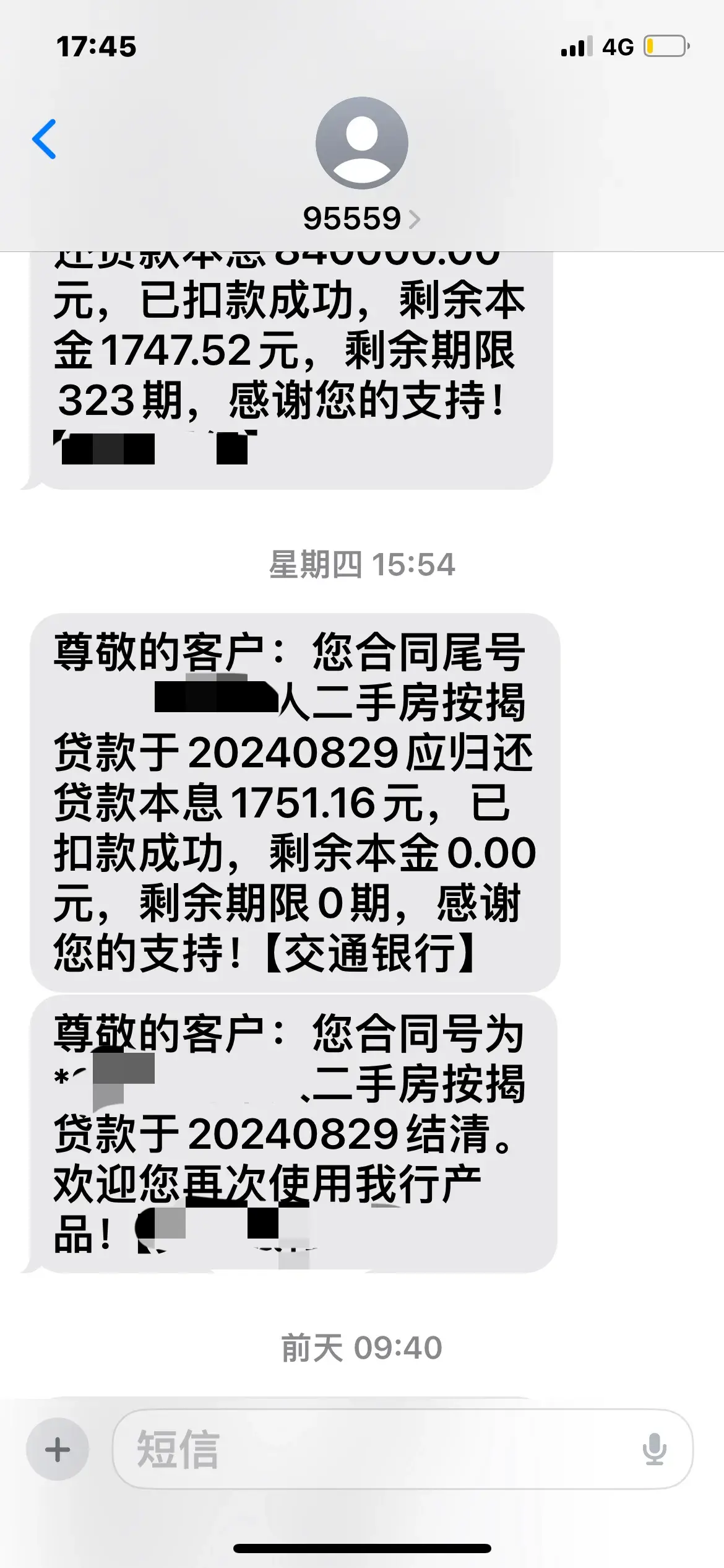 17:办理完申请存够差额后8月24日收到银行短信,差额结清通知;