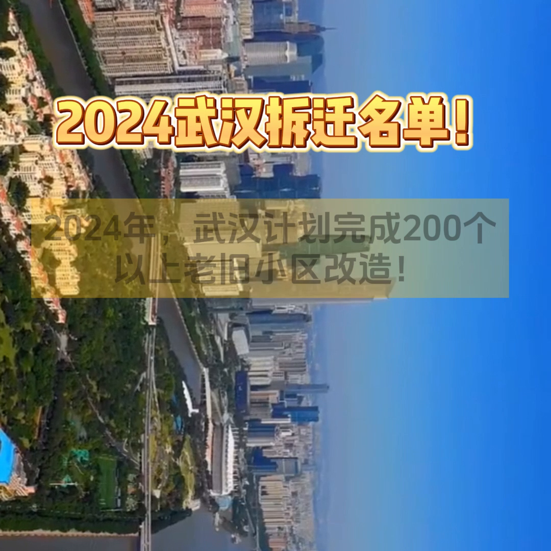 2024武汉拆迁名单!2024年,武汉计划完成200个以上老旧小区改造!