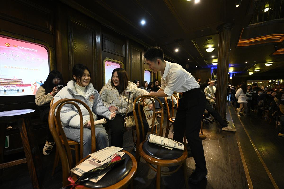 为庆祝2024年“三八”国际劳动妇女节,武汉市妇联、武汉文化旅游集团,3月初在“知音号”游轮上,联合举办了“缘定江城·爱在武汉”主题交友联谊会。活动现场来自武汉市直机关工委、武汉市人才局、武汉文化旅游集团、三峡集团等有关单位的近200名单身青年参加。