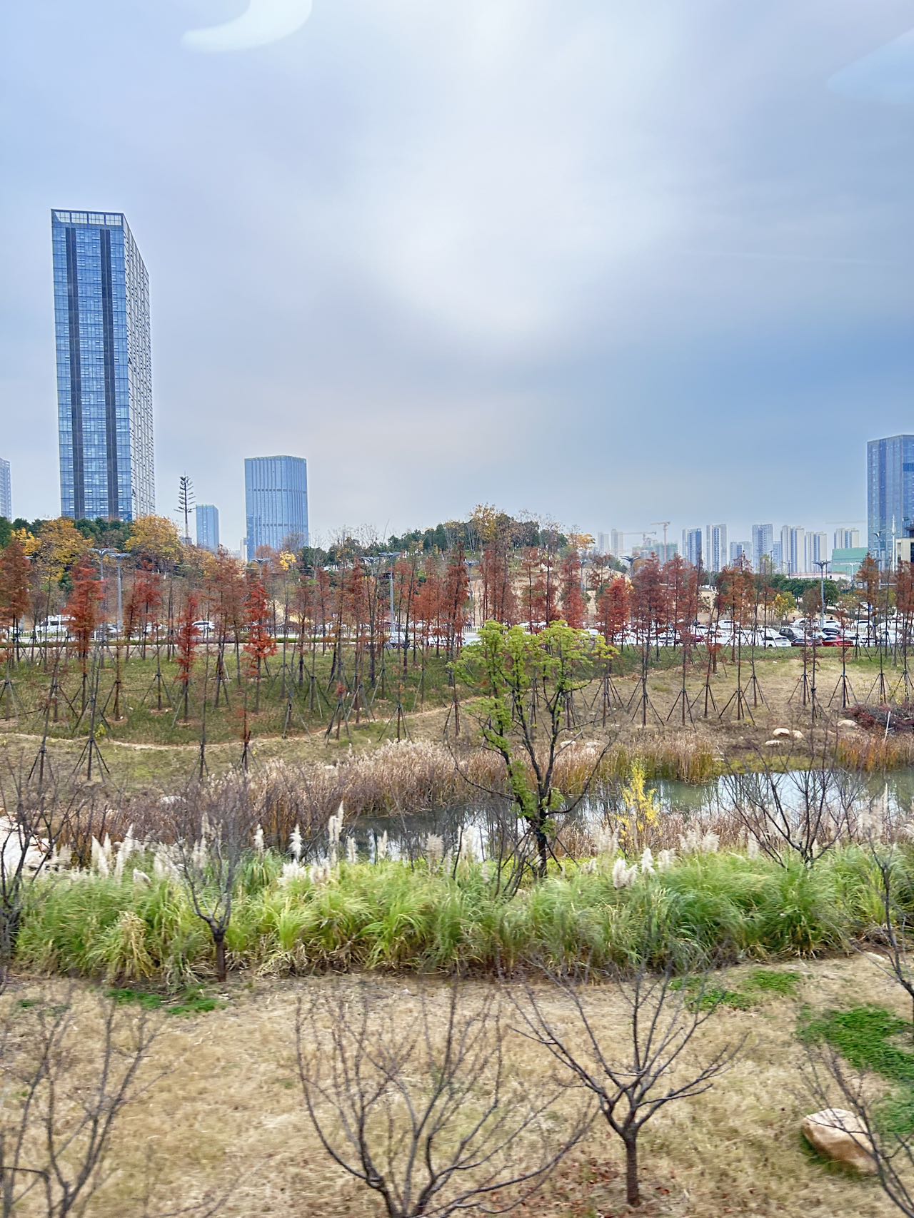 在繁华城市里有这么大面积空旷地带以及山水、绿化景观,很难得。