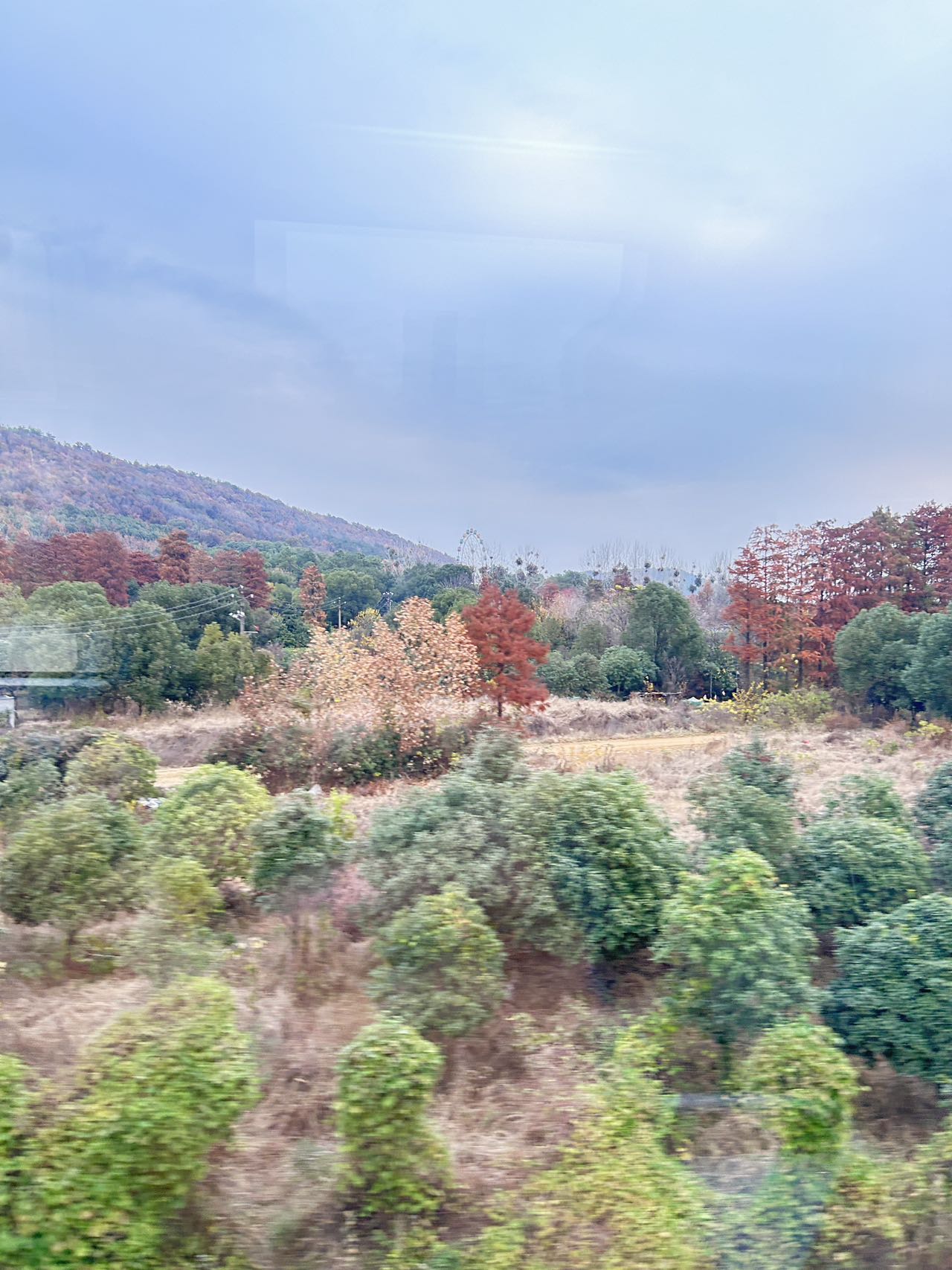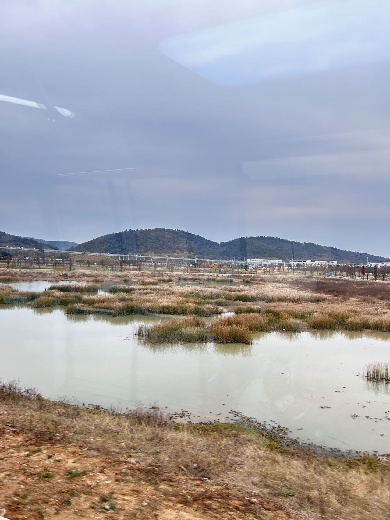 先欣赏一下窗外的风景吧:(站在车厢里隔着玻璃拍的)
