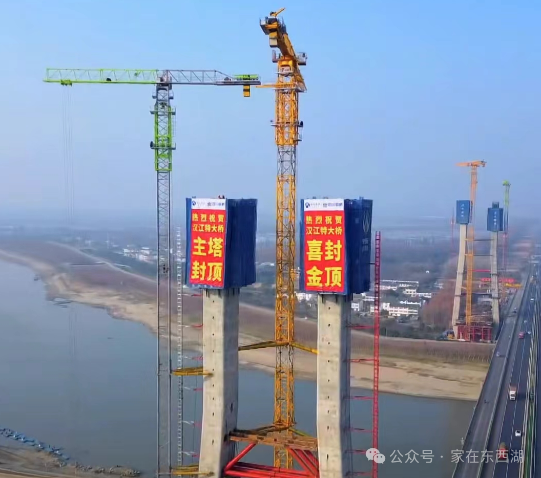 目前,汉江特大桥新桥主塔喜封封顶,6标项目整体预计于2025年年底建成通车。