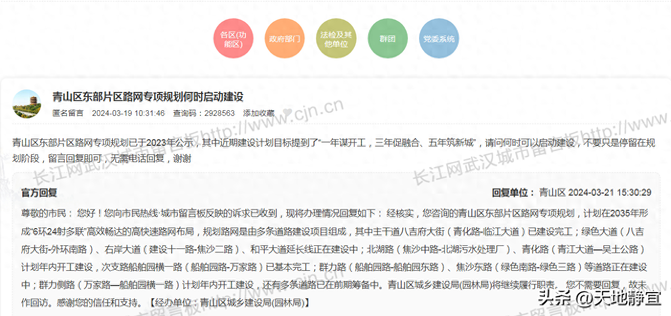 网友咨询 青山区东部片区路网专项规划已于2023年公示,其中近期建设计划目标提到了“一年谋开工,三年促融合、五年筑新城”,请问何时可以启动建设,不要只是停留在规划阶段