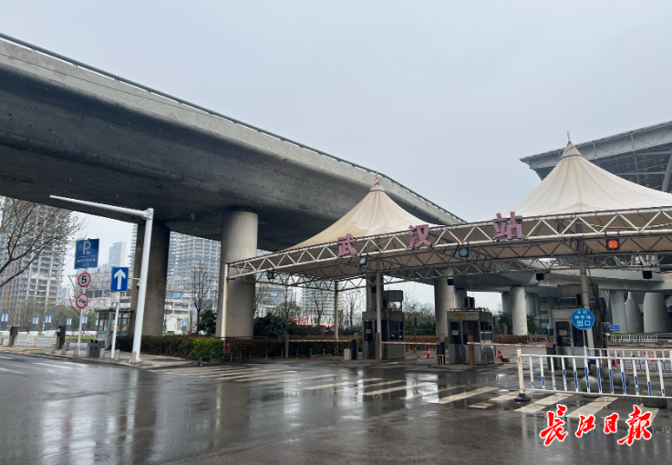 武汉火车站西出站口外,指示牌显示“正在建设暂未使用”。记者商佩 摄
