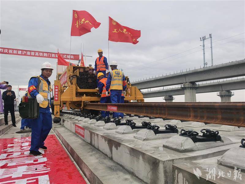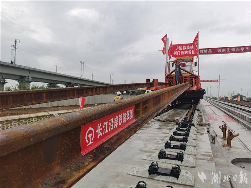 4月16日,在沪渝蓉高铁(简称“沿江高铁”)武宜段荆门西站施工现场,随着中铁四局多功能牵引车缓缓将一对500米长钢轨稳稳铺设在无砟道床上,标志着沿江高铁武宜段开始铺轨施工,进入建设冲刺阶段,也为荆荆高铁年底通车打下了坚实的基础。