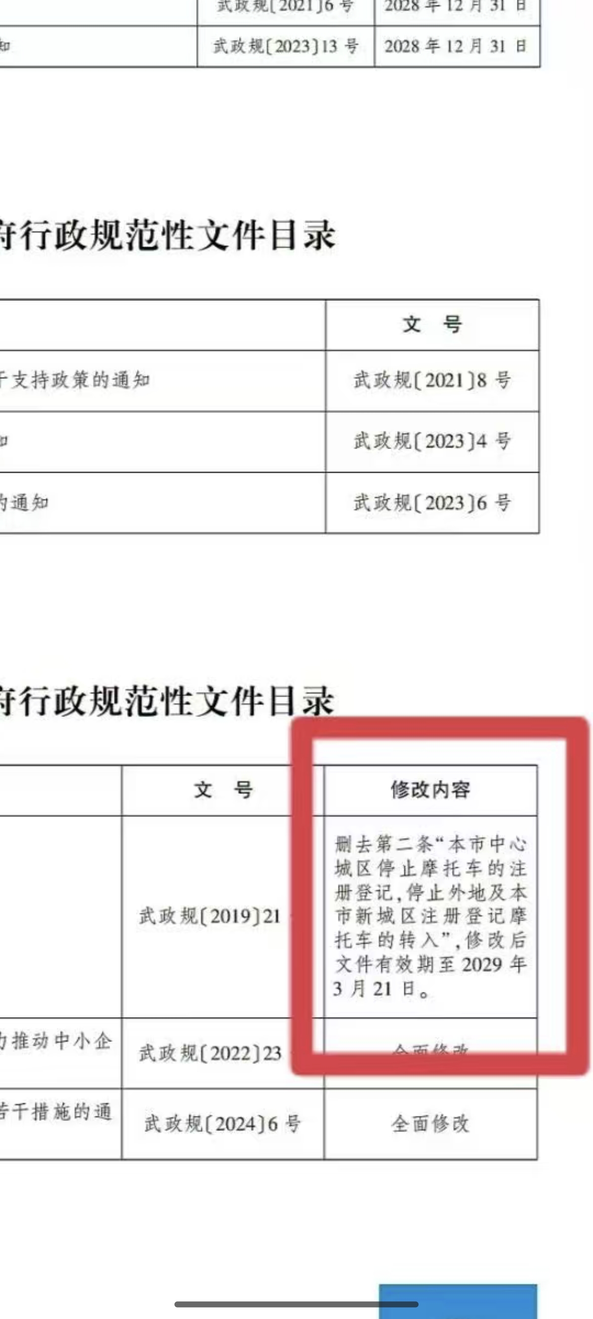 删去第二条“本市中心城区停止摩托车的注册登记,停止外地及本市新城区注册登记摩托车的转入”,修改后文件有效期至2029年3月21 。