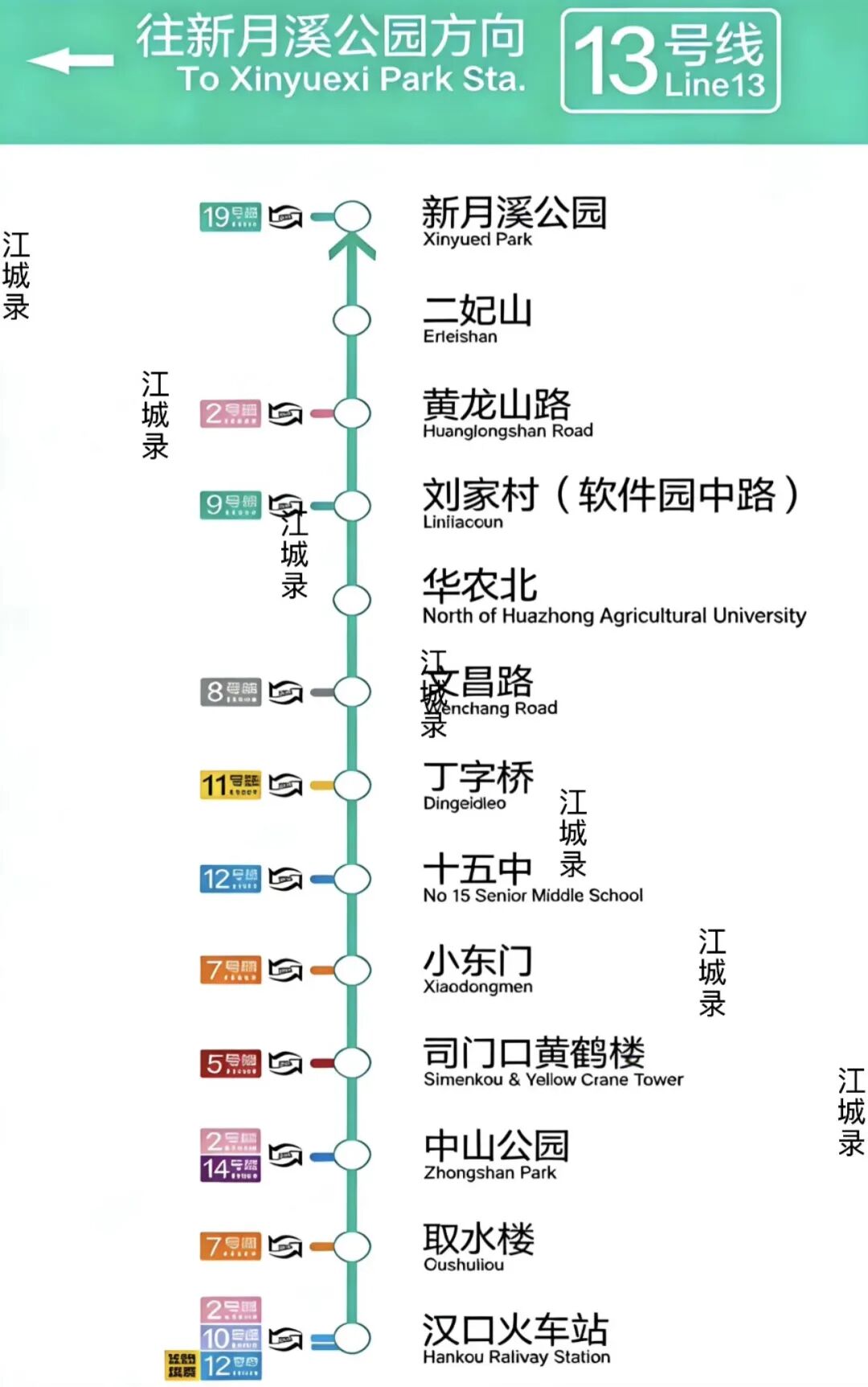 作为南北穿城大动脉,13号线堪称本轮规划的“压舱石”。 它从新月溪公园出发,串联光谷南、武昌核心、汉口枢纽,直达汉口火车站,精准分流2号线核心客流,破解南北向通勤拥堵痛点 。线路覆盖高校、文旅地标与交通枢纽,既是通勤线,更是产业线、枢纽线。