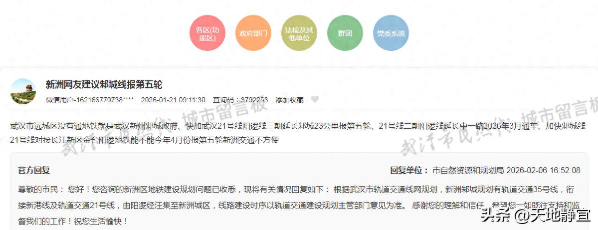 网友反馈 武汉市远城区没有通地铁就是武汉新州邾城政府、快加武汉21号线阳逻线三期延长邾城23公里报第五轮、21号线二期阳逻线延长中一路2026年3月通车、加快邾城线21号线对接长江新区金台阳逻地铁能不能今年4月份报第五轮新洲交通不方便