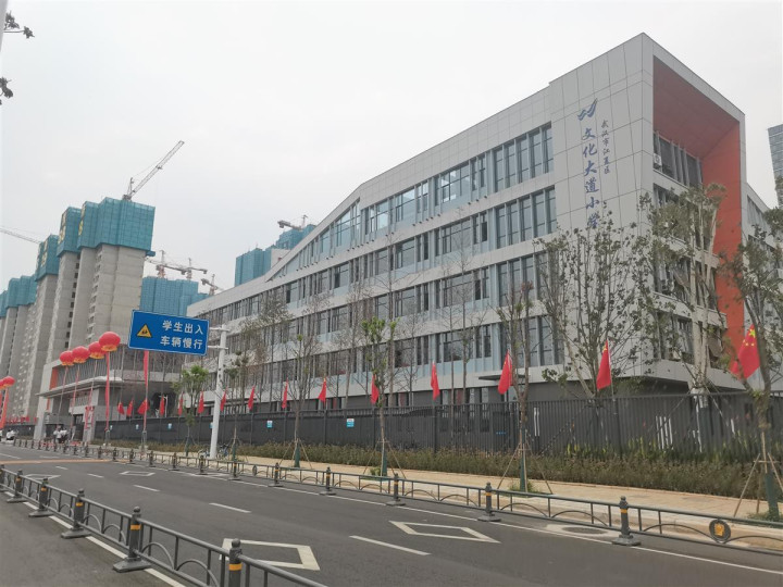 文化大道小学坐落在江夏北端,与大武昌中轴线文化大道相依,毗邻汤逊湖畔。学校创办于2021年9月1日,此前全校师生曾在大桥中学过渡一年。今年9月,该校校舍正式投入使用,36个班,1800余名师生“回家”上课。