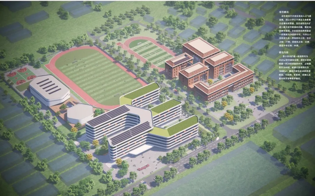 该学校就是原来的洪山小学,根据近期官方消息报道,该学校将被扩建成新的九年一贯制学校,将由目前的33亩扩建至77亩,配建综合楼、报告厅、科技馆、体育馆等适应未来学校发展所需要的功能场馆。
