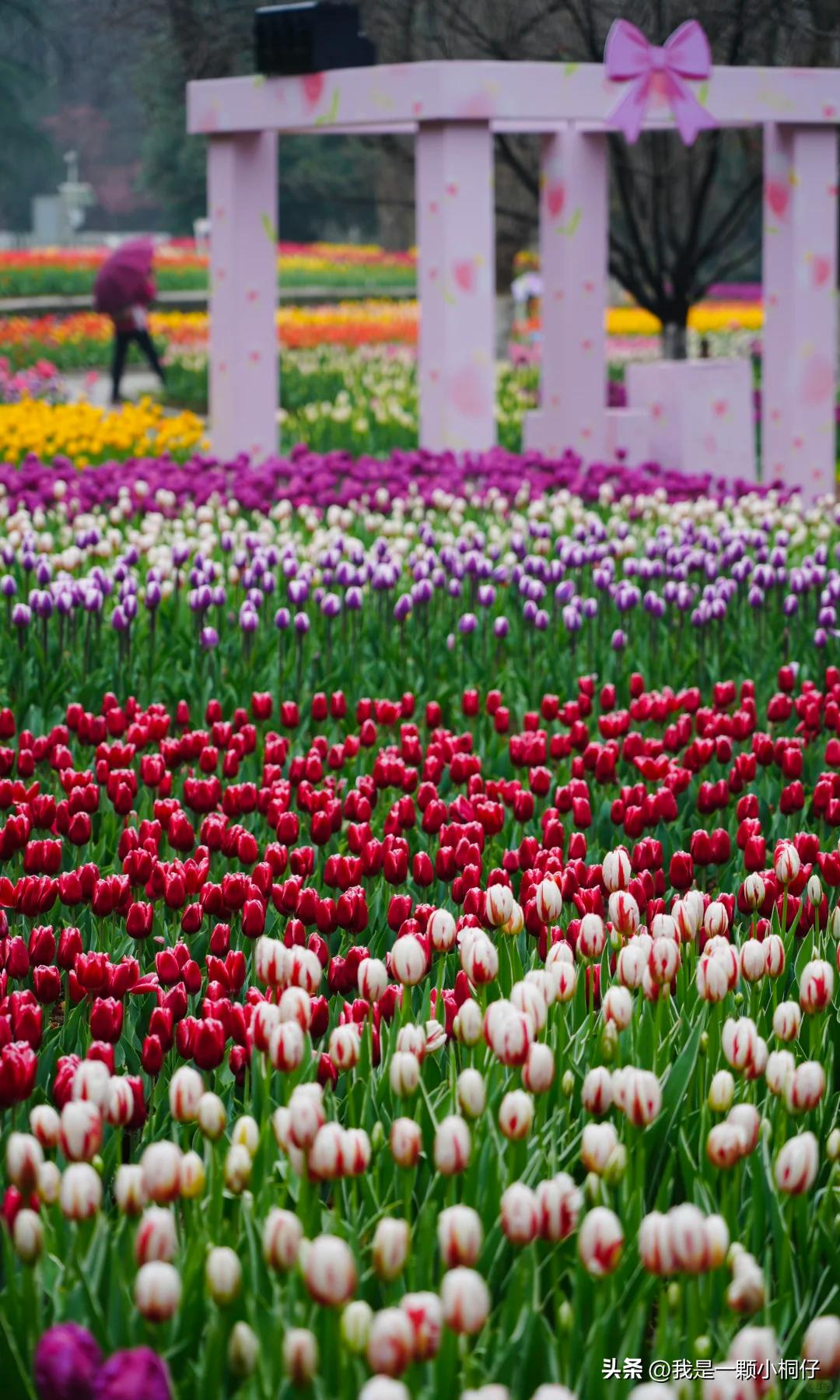 1️⃣ 植物园正门口:进门即被郁金香包围,花朵饱满艳丽,色彩层次丰富,随手一拍都是油画感大片