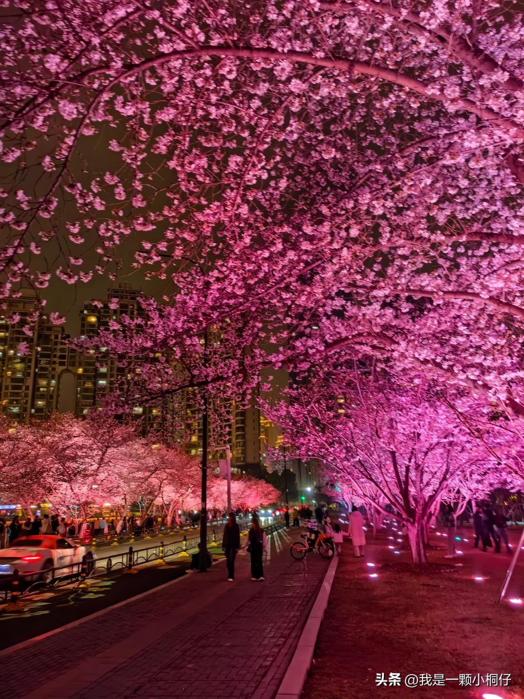 黄孝西路樱花大道:两侧樱花树密集,抬头就是粉色穹顶,灯光一打,震撼感直接拉满。