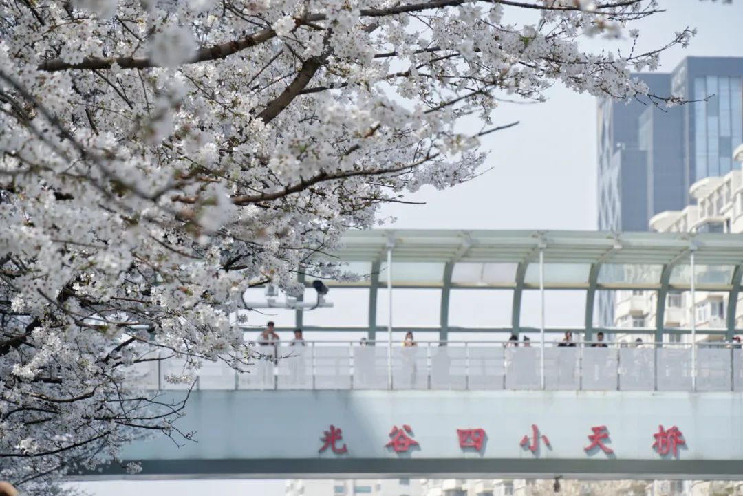 连接马路两端的光谷四小天桥。