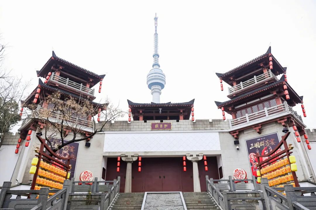 知音殿旁的龟山电视塔正在同步焕新升级,春节期间将举办科技庙会嘉年华活动,AI机器人与非遗表演互动,呈现复古与新潮融合的文旅新玩法。
