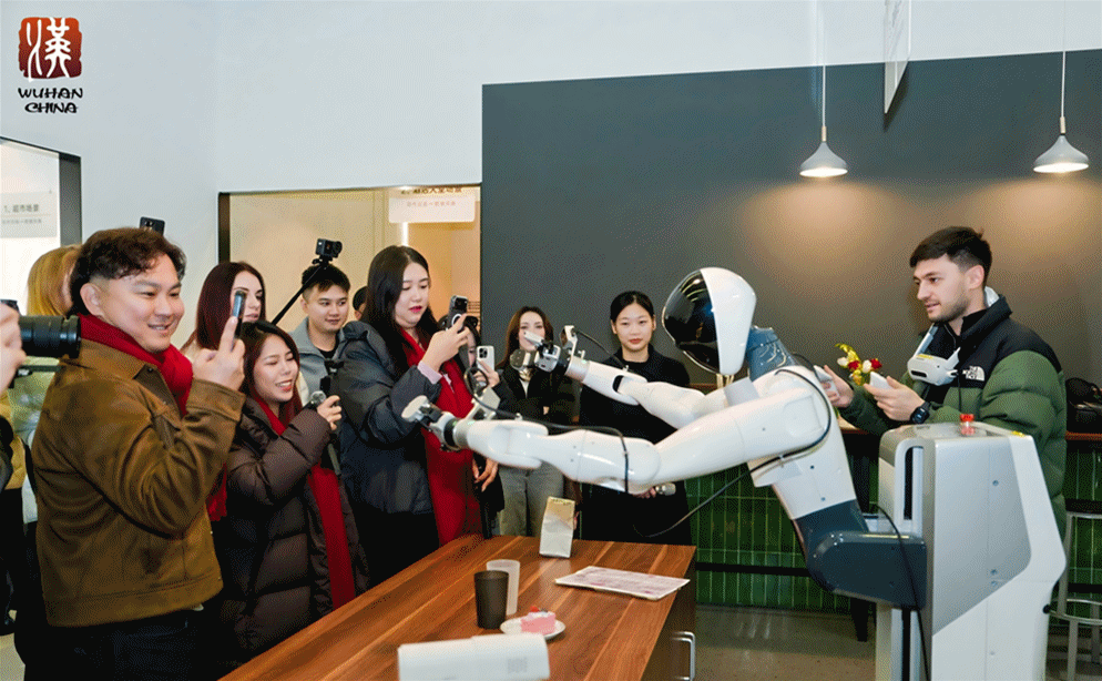 此次武汉之行,达人们不仅体验了传统年味,也感受到了这座城市的现代脉搏。1月31日上午,在湖北省人形机器人创新中心,旅行达人Valeria与汉产人形机器人握手互动,风趣地说:“你好,你见过老外吗?反正我是第一次这么近地见到机器人!”创新中心内,机器人在超市、餐厅、工厂等仿真场景中自如行走、操作,令国际达人们连连称奇。