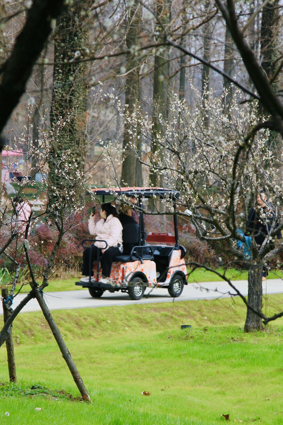 今年,梅园推出的多项创新体验项目也得到游客喜爱。在主干道旁,数辆造型时尚的无人驾驶低速智能伴游车缓缓穿行,游客可乘车徜徉花海,从独特视角欣赏梅园景致。带着孩子游玩的游客冯雪笑着说:“坐在车上既能休息,又能看到满园春色,孩子特别喜欢。”东湖梅园内的“幸运铃”互动装置吸引了许多年轻人体验。游客轻摇铃铛,清脆声响与淡淡梅香交织,寓意“摇响新年好运”。来自武昌的大学生小王和同伴轮流摇着铃铛:“感觉很有仪式感,特地拍了视频分享给家人。”
