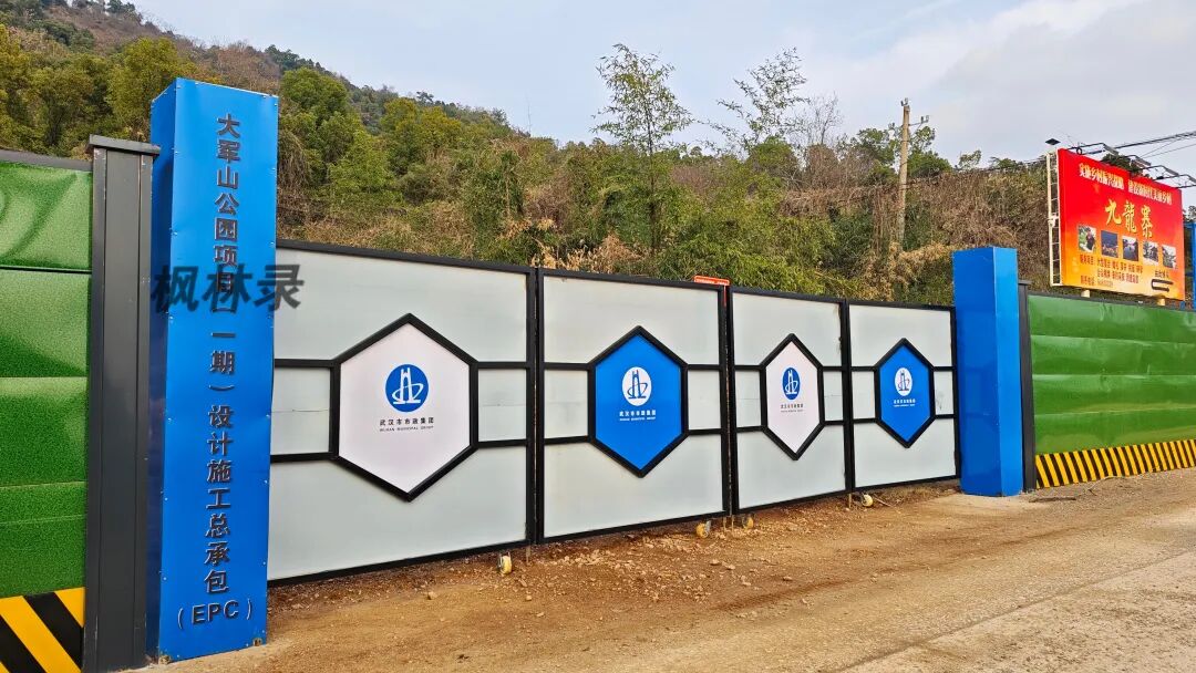 随着军山新城的加速发展,市民们期待已久的生态休闲新地标终于传来好消息:大军山公园项目(一期)已于近日正式启动建设,目前北入口与南入口已搭建起施工门头,一台挖掘机已开上山顶望江台,正在进行道路清整作业。