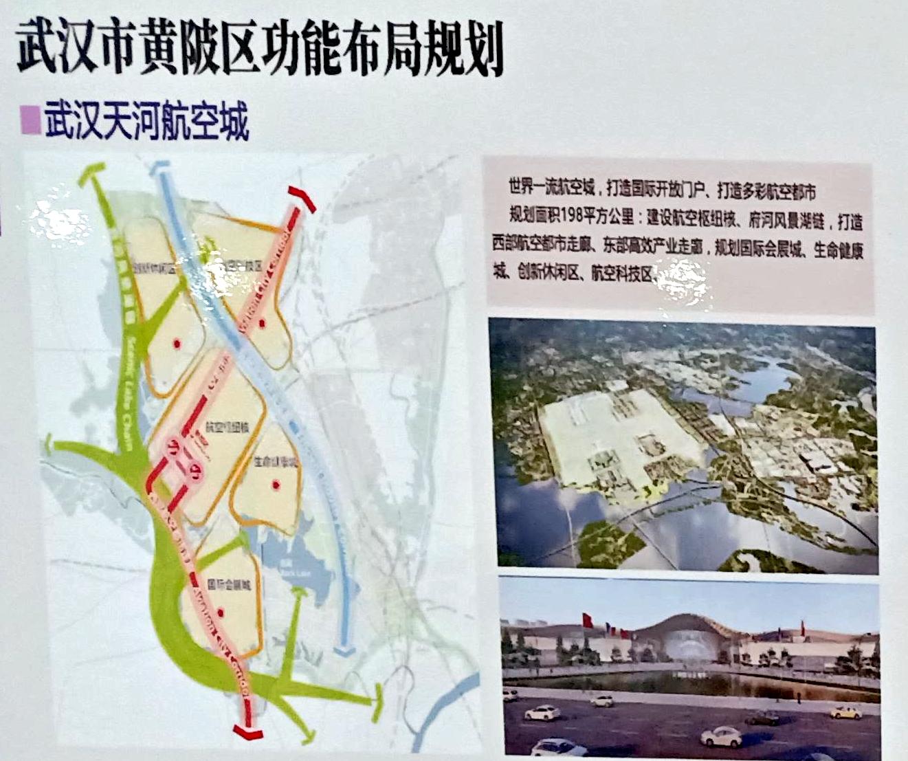 黄陂的天河航空城,其实就是正在申报的国家级武汉临空经济示范区的另外一个名称(隔壁的东西湖有个临空港开发区,黄陂的这个武汉临空区,只能换一个名字,以免大家都搞不清楚),面积150平方公里,位于黄陂西南,紧邻汉口市区,包括了黄陂祁家湾、天河、横店、盘龙城各自的一部分