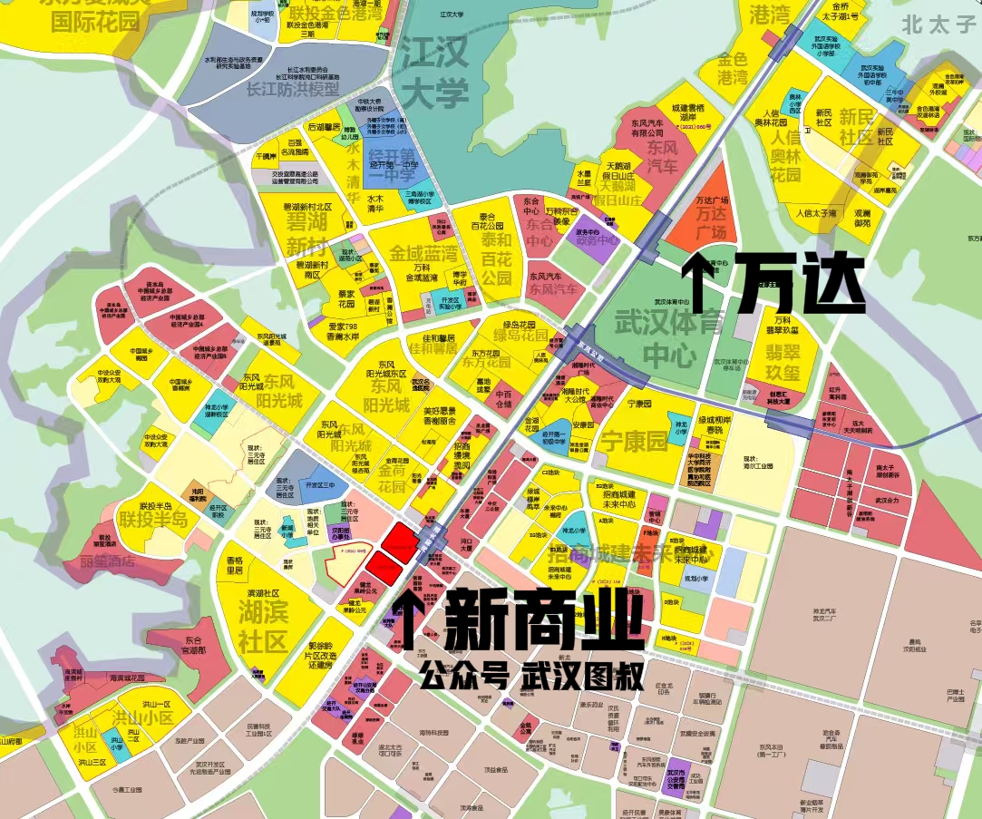 目前主要服务这个片区的商业为万达广场,但相对而言,万达广场属于整个沌口居住片区的边缘地带。