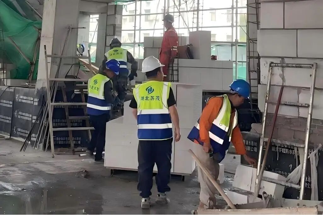 当前,施工现场聚焦各项剩余工程,有序推进多作业面施工。 在主体建筑区域 ,施工人员正全力开展 砌体材料进场 的内部墙体砌筑、内部装修。近期将开展儿童游乐场基础整形和游泳馆室内的墙体砌筑工作。