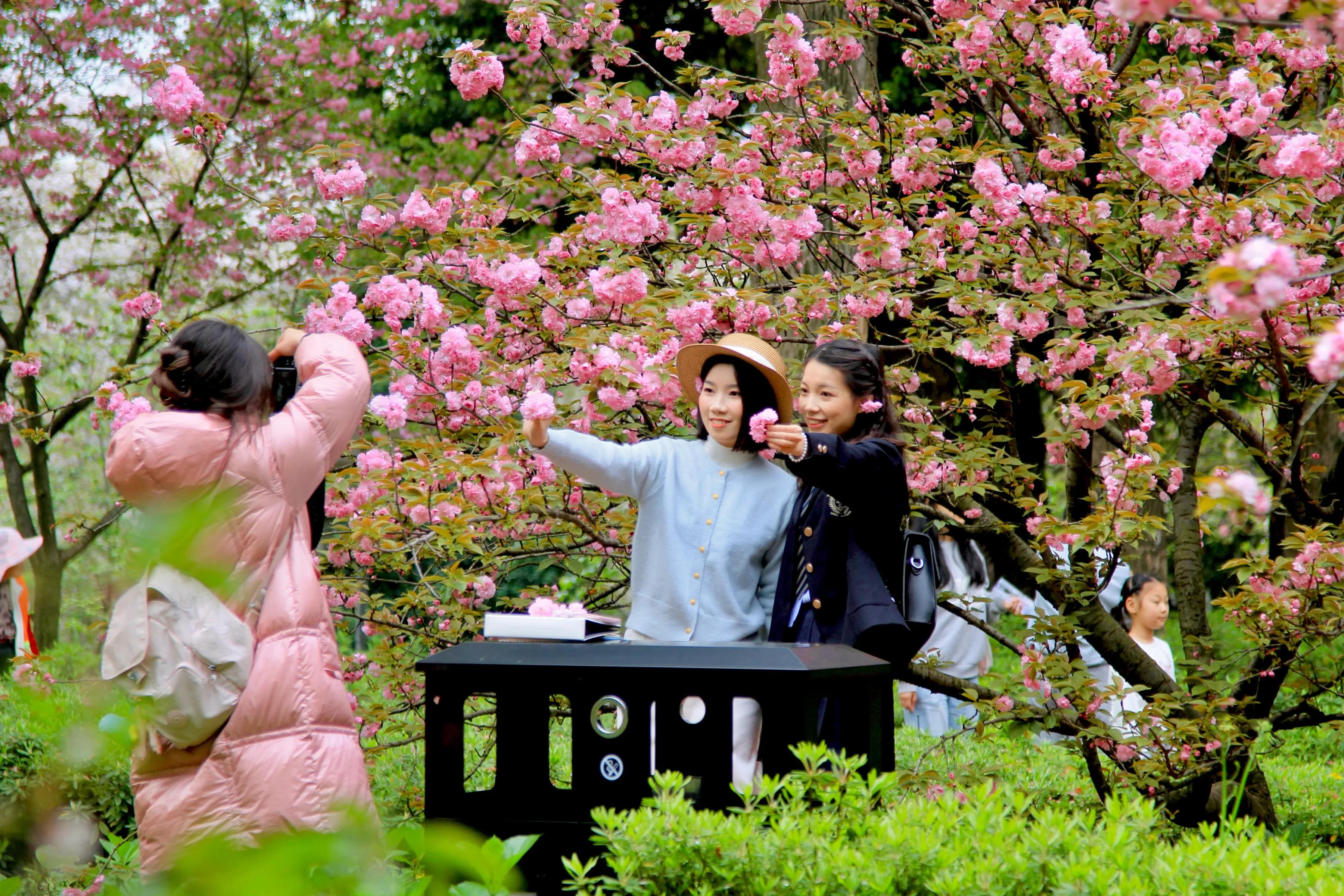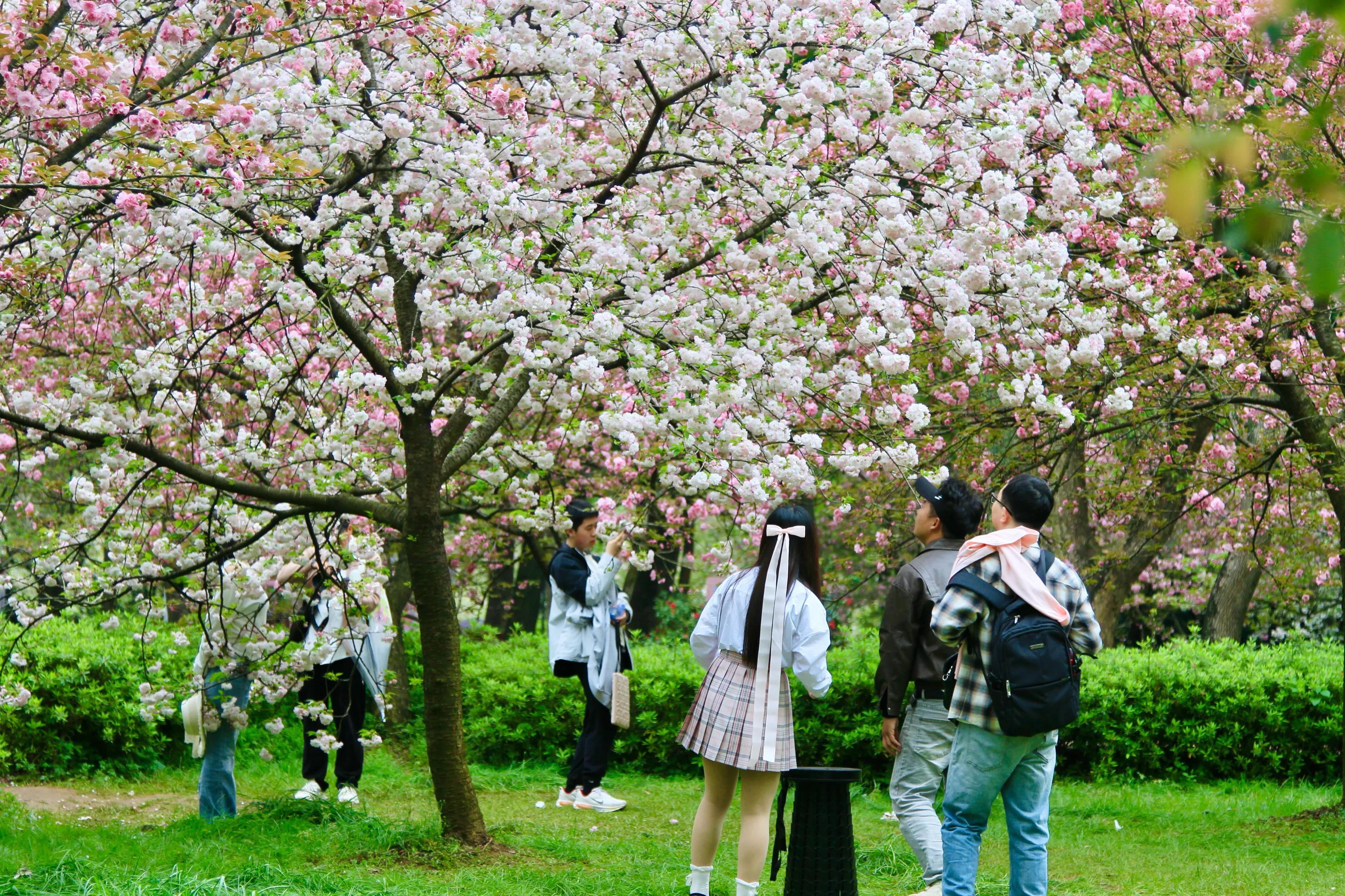 此次晚樱花期持续至4月中上旬,园区每日7时至22时开放,打造日赏繁花、夜观灯影的体验,还有国风演艺等配套活动。趁春光正好,赴这场暮春樱花之约吧。
