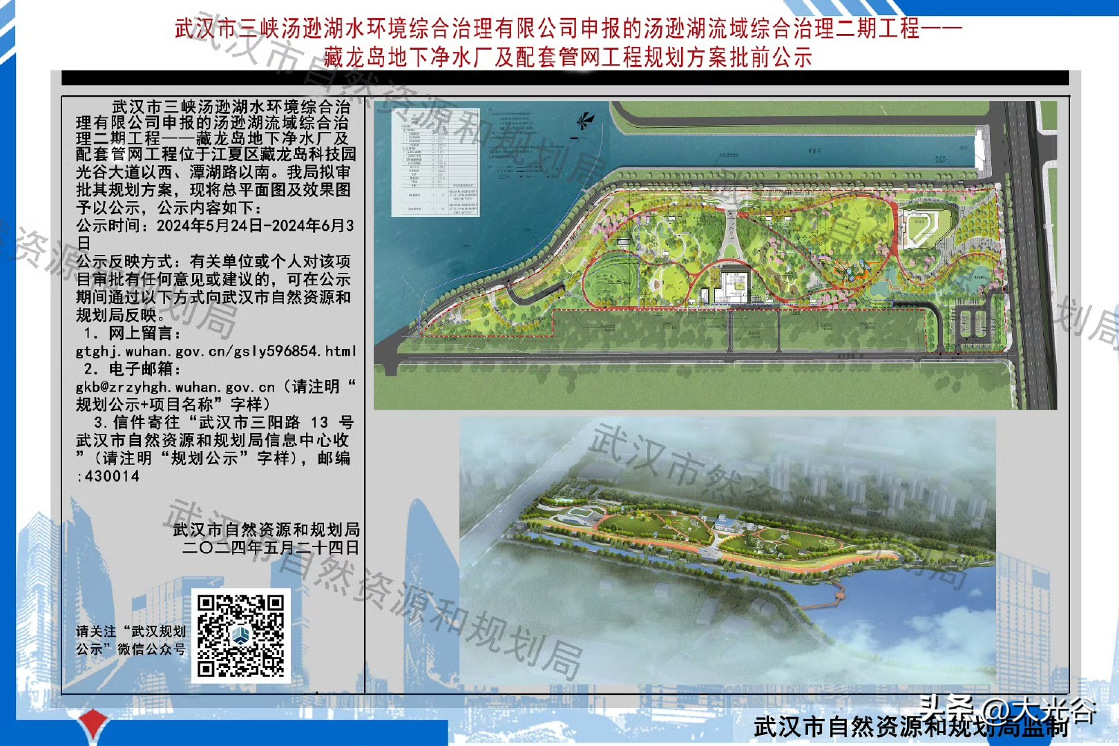 公园位于江夏经开管委会附近,建成后将与周边藏龙岛地下净水厂地上公园联动,进一步完善藏龙岛生态休闲配套,辐射大光谷片区。