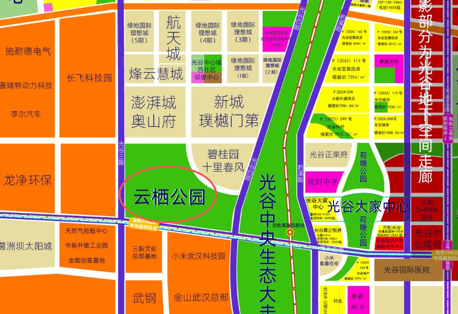 目前,该公园周边有光谷奥山府澎湃城、碧桂园光谷十里春风、新城璞樾门第、绿地国际理想城、航天城等一大波小区。