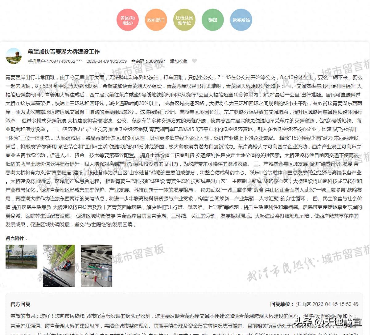 官方回复:青菱过江通道、跨青菱湖大桥的建设时序,需结合城市整体规划、前期手续办理及资金落实等情况统筹推进。目前相关项目仍处于前期研究论证阶段,暂无明确开工时间。