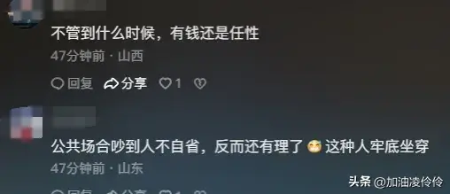 “公共场合吵到人还不反省,反而还有理了,这种人就应该接受法律的制裁。”