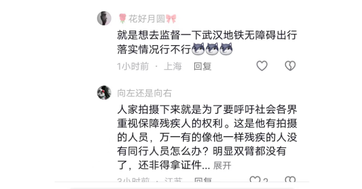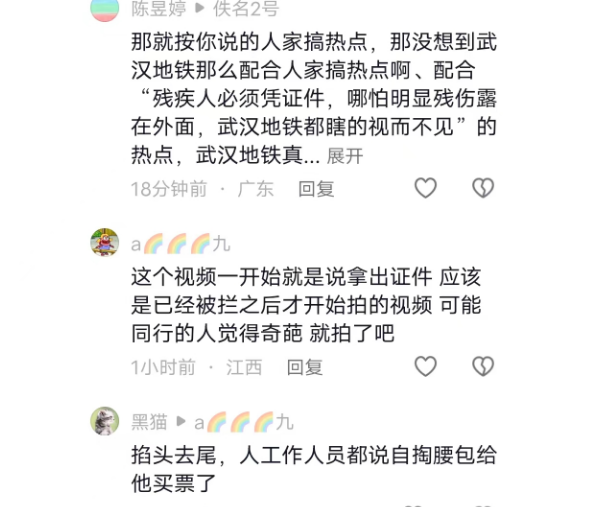这一部分网友表示,就算是专门找人拍摄,但是地铁站的规定不便于残疾人也是真实存在的,否则即便他想自导自演,也没人配合。