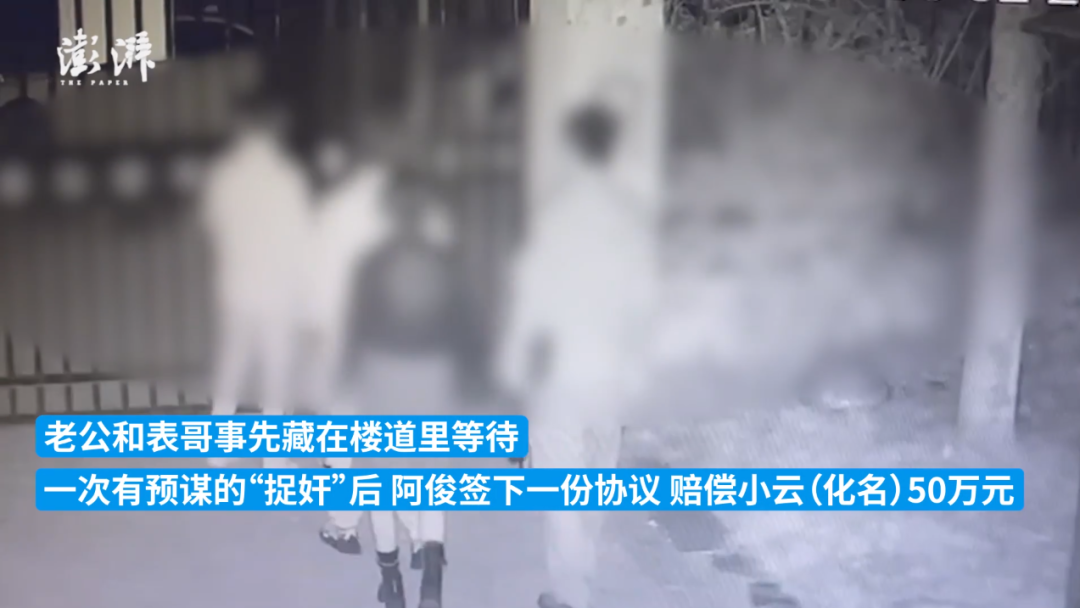 阿俊称,2022年11月他遭遇了一次“有预谋的捉奸”,小云老公和表哥事先藏在楼道里等待,他被迫签下一份协议,赔偿小云50万元。事后,阿俊以敲诈勒索为由报警,小云又在6天后报警称被强奸。
