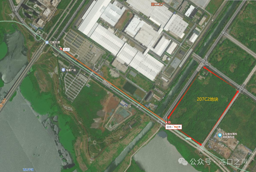 武汉经开区207C2地块位于花林路、紫藤路和芳林路围合区域,南临南太子湖,离地铁6号线江城大道站约900米。