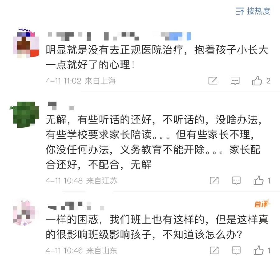 “目前更多的学校会选择让家长陪读。”成都某小学班主任告诉记者,对于这类学生,校方也很头疼,“每个孩子都有接受教育的权利,让孩子退学不符合义务教育法的规定。但单独为其开班授课又需要大量的教资力量投入,这些都是要综合考虑的。”