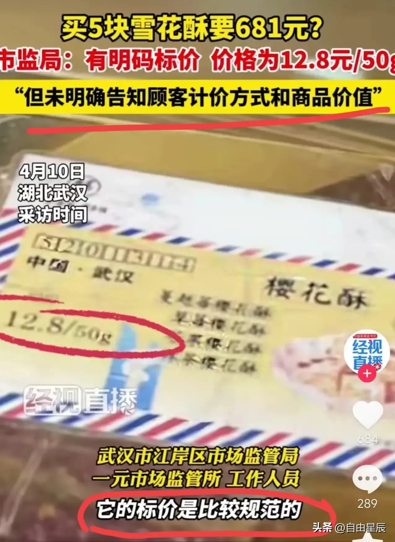 这样继续闹下去,吃亏的肯定是商家,买了5块巴掌大的雪花酥,竟然高达681元,游客都知道了的话谁还会去买。