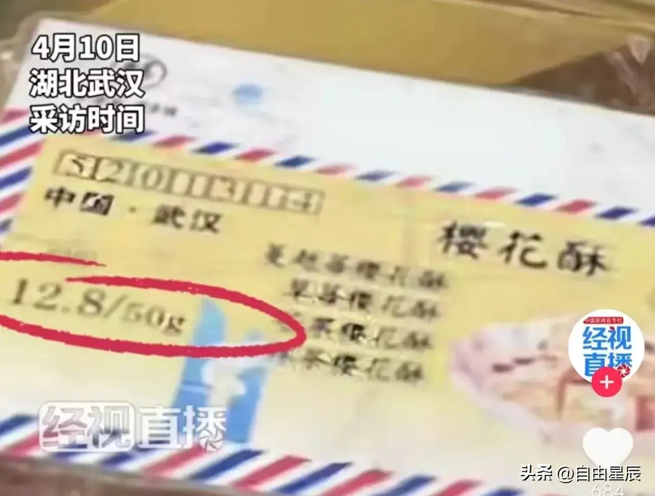 经过调查,女子大伯购买的樱花雪花酥标价为12.8元/50g,也就是说一斤128元,一千克256元。