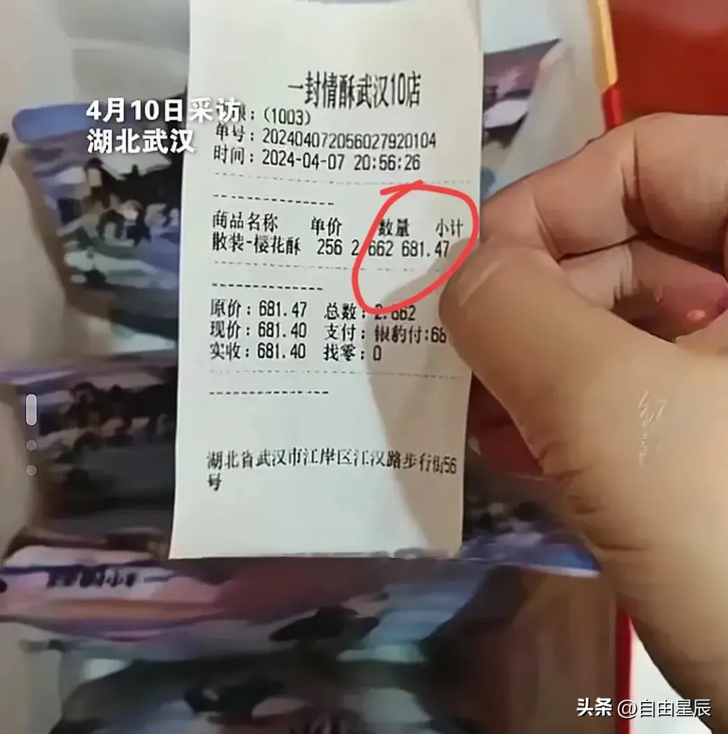 4月7日,女子和家人一行11人到湖北武汉游玩,在路过汉江路步行街时,一家名为“一封情酥”的门店时,店员在门口热情的招揽游客试吃雪花酥。