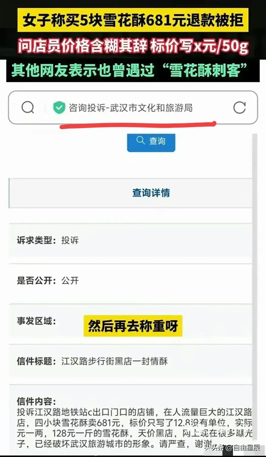 4月份正是武汉的旅游旺季,然而近日一则“天价雪花酥”事件,让武汉“火”了一把,差一点把前往武汉的游客都给劝返了,甚至有网友调侃道“武汉不买酥”。