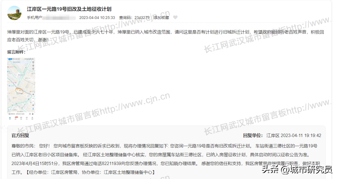 其实早在2023年,车站街道三德社区的一元路19号已纳入江岸区老旧小区项目储备库,具体启动时间以征收公告为准。