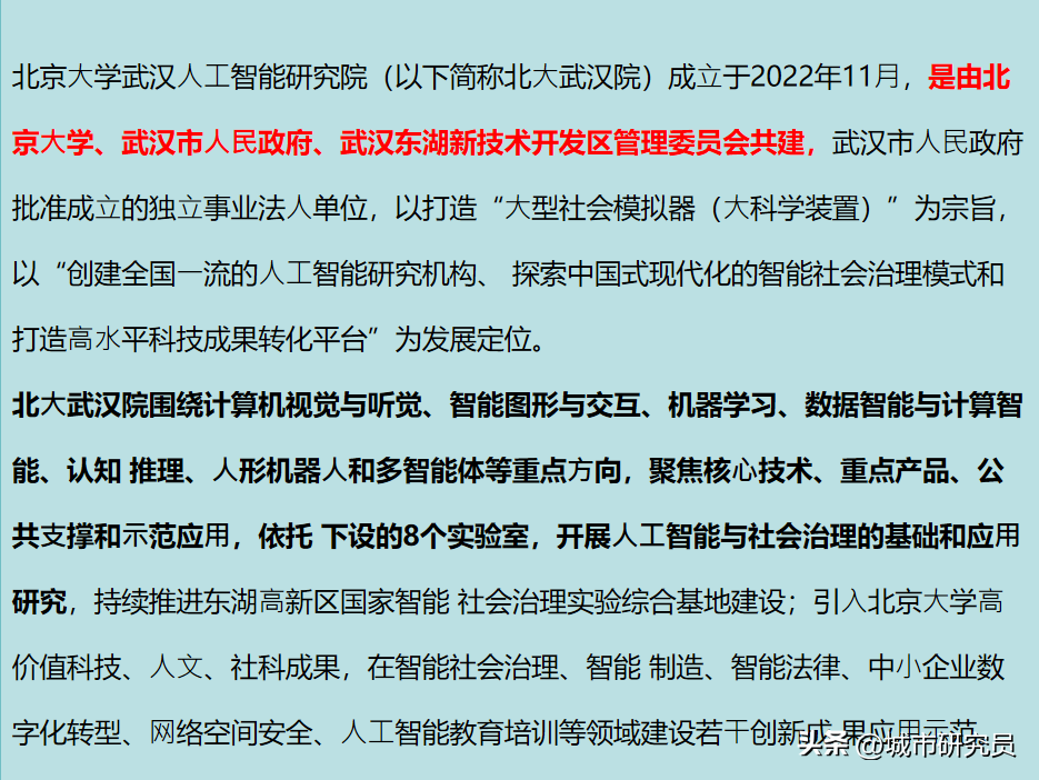 武汉市在光谷和武汉经开区积极布局人工智能科研和产业,通过和北京大学、科大讯飞等国内外一流高校及高科技企业合作,推动武汉市在人工智能技术研究、人工智能和产业融合,以科技驱动助力武汉产业转型升级,成为武汉经济发展新引擎!