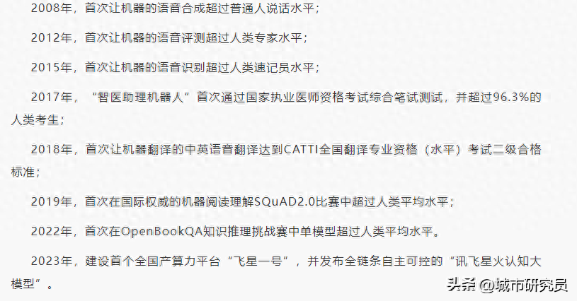 科大讯飞总部位于合肥市,去年发布的讯飞星火认知大模型也在多领域应用落地,持续迭代。创立了人工智能发展史上的一系列里程碑: