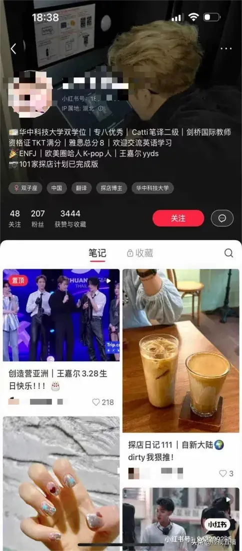 记者根据网友提供的信息,发现这位“咖啡过敏姐”在小红书上有自己的账号,称自己有华中科技大学双学位,专八优秀,剑桥国际教师资格证TKT满分,并标注“101家探店计划已完成版”。账号内发布的内容,基本都是去咖啡店拍照打卡的文字,经视直播记者试图联系到她,但是再点进页面,发现此用户已注销。