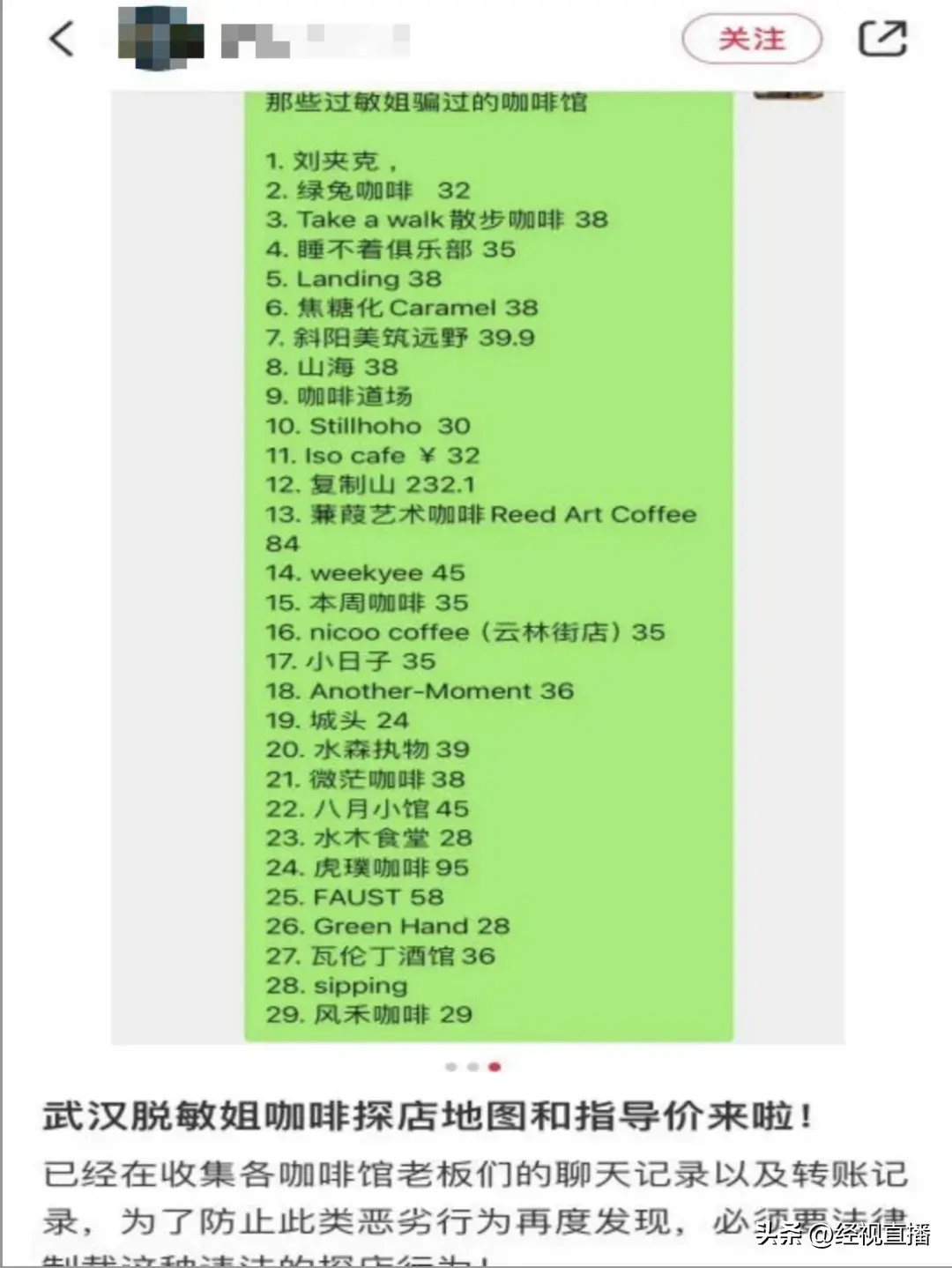 经视直播记者在网友收集的图片里看到,目前武汉已有29家店被“咖啡过敏姐”光顾过,并用相同的手法,将饮品金额全部退还。