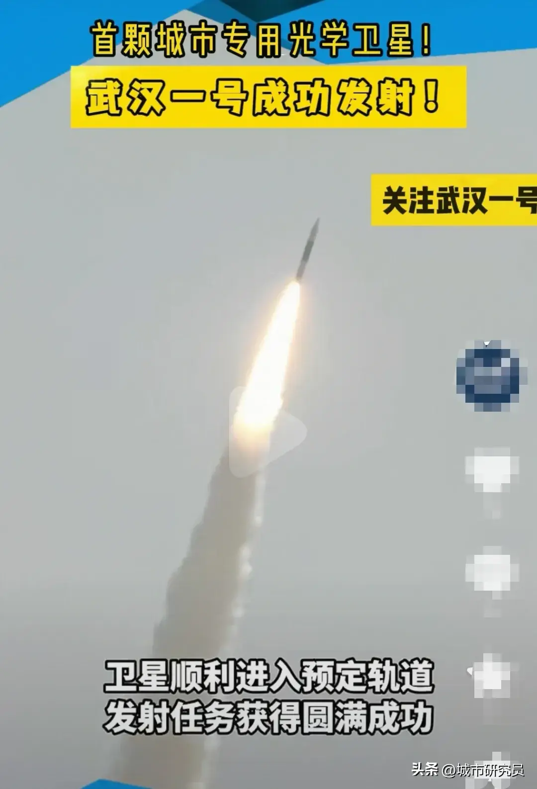 本号获悉,根据长江日报消息,今天(5月21日)12时15分,我国在酒泉卫星发射中心使用快舟十一号遥四运载火箭,成功将武汉一号卫星发射升空,卫星顺利进入预定轨道,发射任务获得圆满成功。本次发射,吸引了诸多媒体的高度关注,因此本次所发射的“武汉一号”卫星具有特殊的意义,武汉一号卫星是我国首颗为城市定制的专用光学遥感卫星,诞生于武汉、服务于武汉。另据了解,在住房和城乡建设部认定的十个超大城市中,武汉是唯一拥有“定制”城市观测光学卫星的城市。国家住建部所确定了我国十个超大城市,城区人口均突破1000万,在我国发展格局中具有举足轻重的重要地位,武汉位居其中,此外,去年武汉城市GDP首次突破2万亿,城市综合实力继续增强。“武汉一号”成功发射,意味着武汉在城市观测光学卫星领域走在中国最前沿,是第一个拥有此城市观测卫星的城市,它将服务于武汉城市空间观察、城市防灾、空气检测、农作物生长期监测等,为城市安全发展提供强大技术支持。