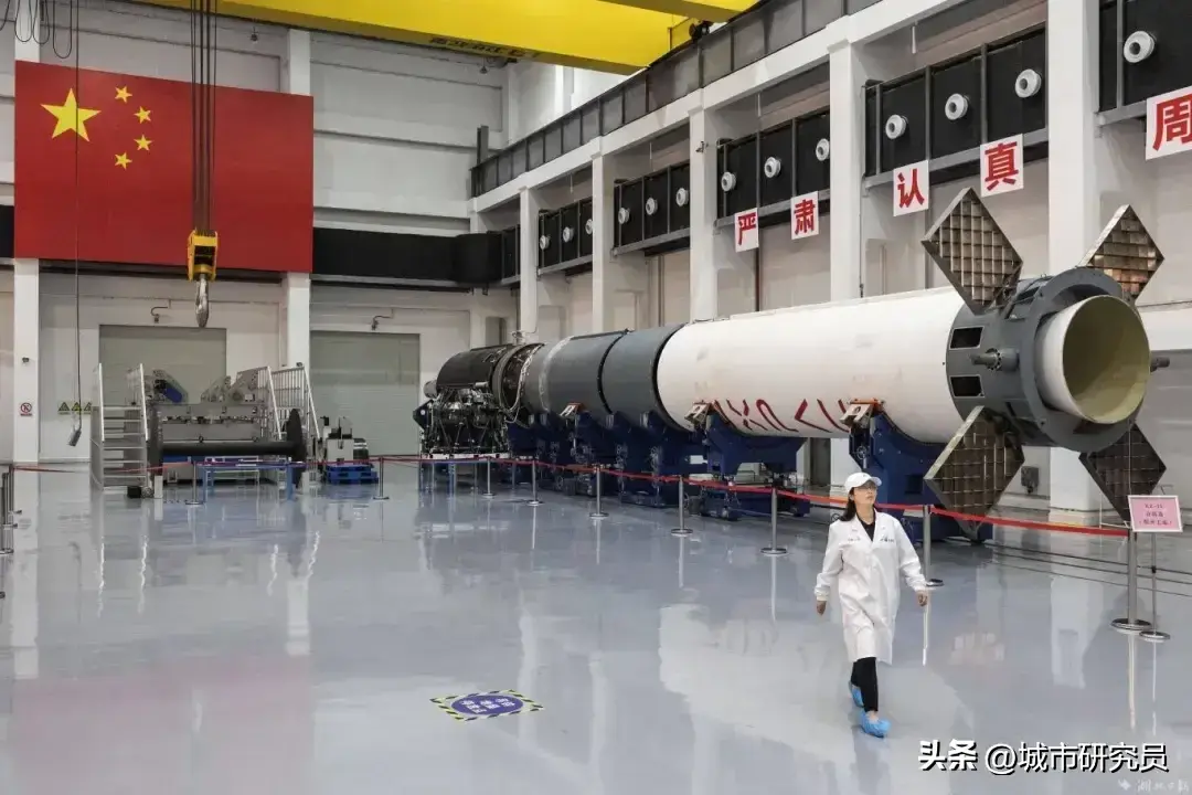 中国星谷:快舟火箭总装厂房内的鸣凤一号火箭发动机(来源:新洲融媒)