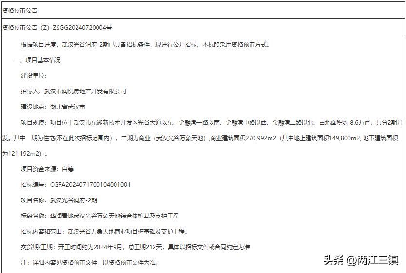 近日,华润置地武汉光谷万象天地综合体桩基及支护工程招标公告发布!#头条创作挑战赛##在头条看见彼此##微头条激励计划##武汉身边事##我要上头条##我要上微头条##万象天地#