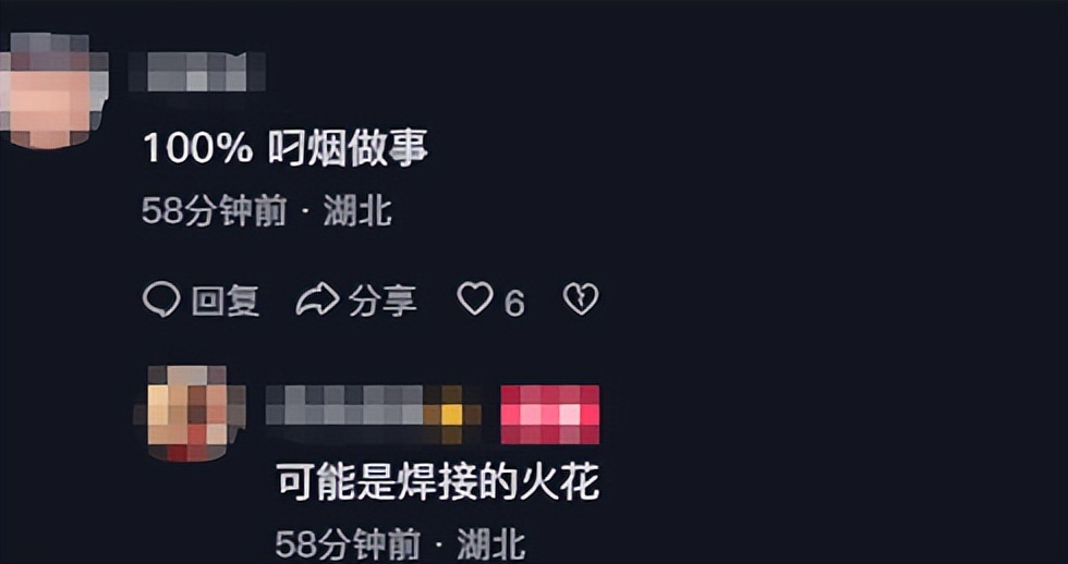视频曝光后,不少网友纷纷猜测起火源:“100%是叼烟做事”,也有网友分析“可能是焊接的火花”。还有网友直接地指出了燃烧物:“塑料圣诞树”。
